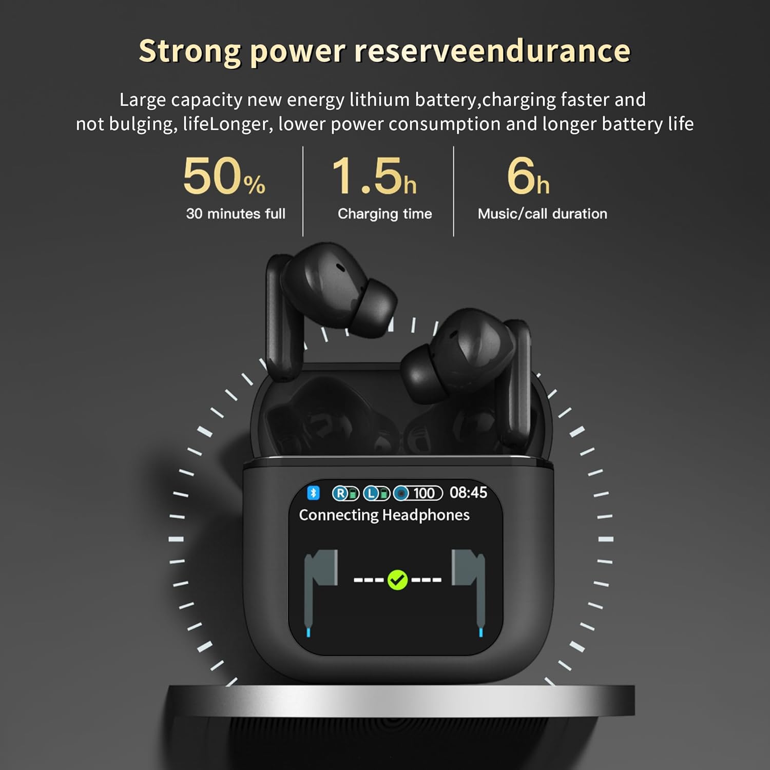 【Ypač ilgas baterijos veikimo laikas】Ausinės be laido Su Bluetooth technologija, šios liečiamo ekrano belaidės ausinės gali lengvai prisijungti prie išmaniojo telefono, planšetinio kompiuterio ar kitų Bluetooth palaikančių įrenginių, kad sąranka būtų be vargo.