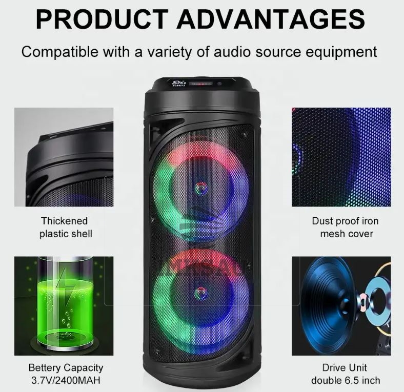 ZQS6212 dvigubas 6,5 colio garsiakalbis 120 W galios belaidis „Bluetooth“ garsiakalbis su spalvingomis šviesomis