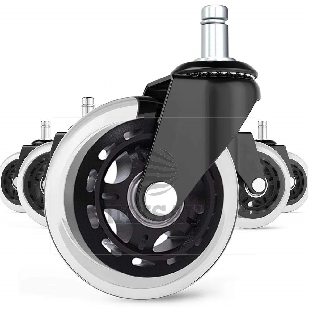Tai puiki alternatyva plastikiniams ratukams. Jums nebereikia dėti negražių kilimėlių prieš braižymą ant grindų. Guminiai ratukai yra tylūs ir nebraižo grindų. Jie tiks ant plytelių, parketo ir kilimų. Tyli 360′ laipsnių sukimosi sistema. Sklandus kėdės judėjimas dėl įmontuotų guolių.