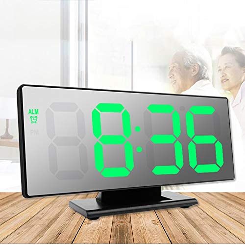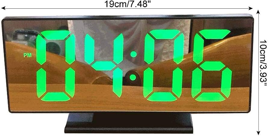 LED ekranas ir dideli paryškinti skaičiai. Laikrodis gali būti naudojamas kaip veidrodis. Turi žadintuvą, rodo temperatūrą, datą.