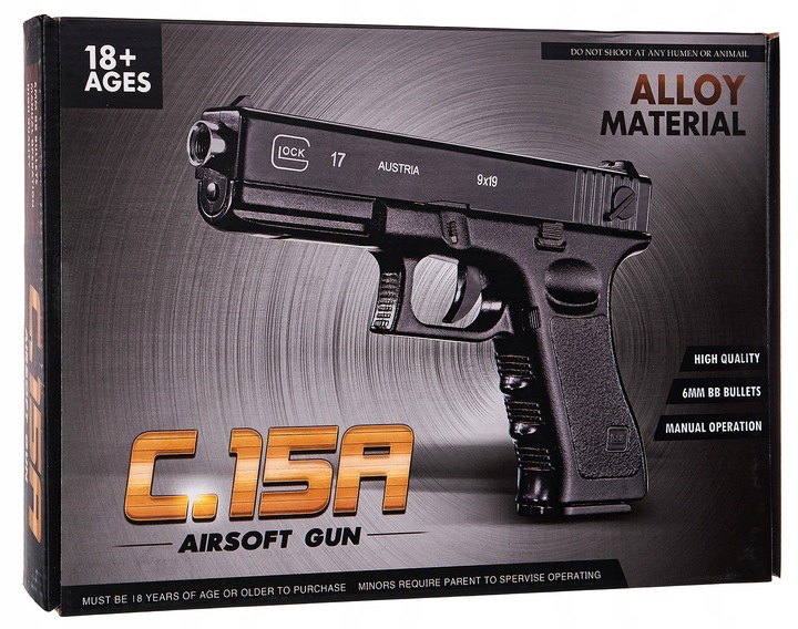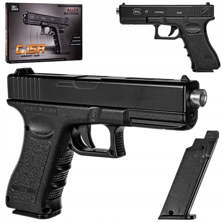 Metalinis replika pistoletas rutuliukai c15a glock 17 asg